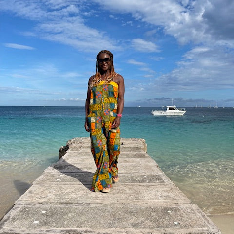 Step into effortless elegance with the DJNI "Patch Print" Wide leg Bandeau Jumpsuit, designed to turn heads and celebrate confident style. This captivating Jumpsuit is crafted from a comfortable fabric featuring a striking patchwork pattern in earthy tones of Jade, turquoise blue, yellow, and orange, highlighted by bold yellow rib neckband. Its strapless, bandeau neckline offers a sleek and modern silhouette, while the relaxed yet tailored fit of the trousers provides both comfort and a flattering drape. Perfect for rooftop gatherings, evening events, or any occasion where you want to radiate sophistication with a unique cultural flair, this suit allows you to move with ease and make an unforgettable impression. Pair it with heels for a polished look or dress it down with stylish flats – this Jumpsuit is your versatile statement piece.